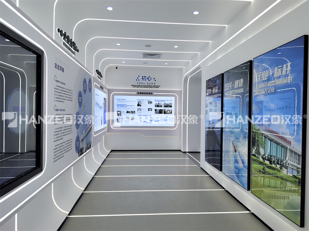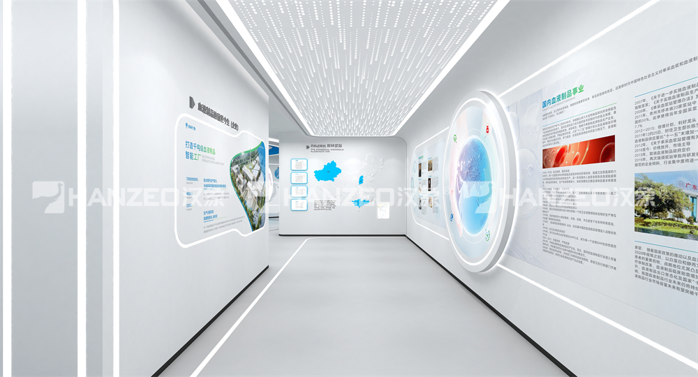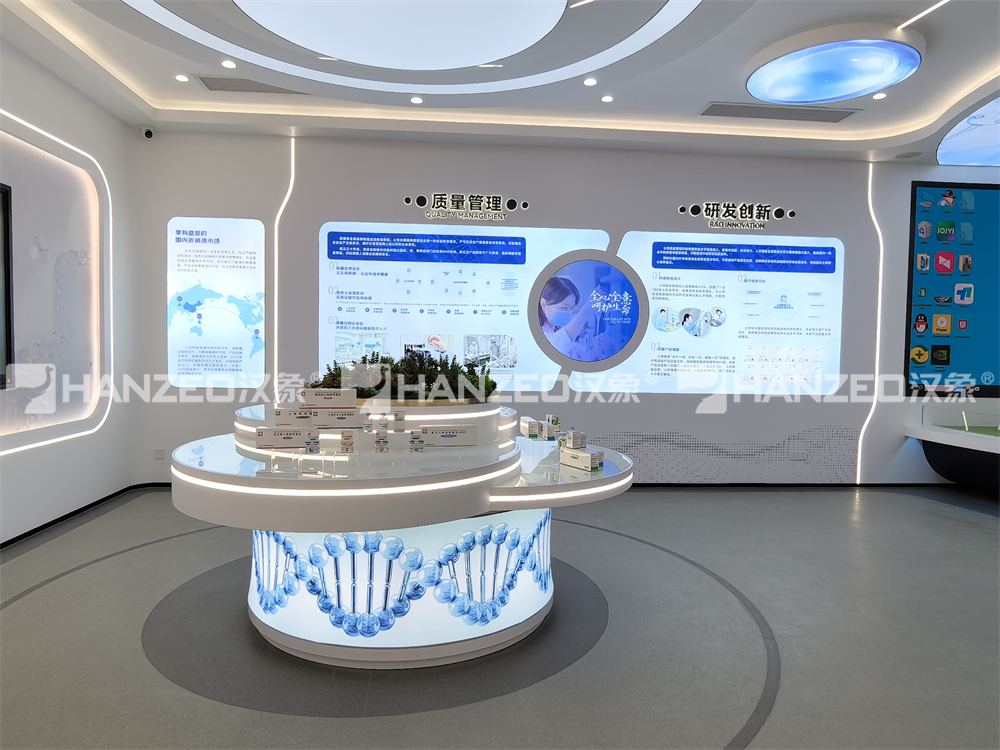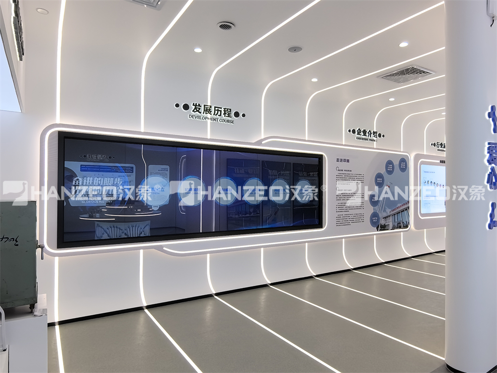 3、展厅涵盖企业介绍、发展历程、质量管理、研发创新、企业展厅迎宾区等多个模块。通过合理的布局与多媒体展示手段,实现信息高效传达与视觉冲击力的统一。