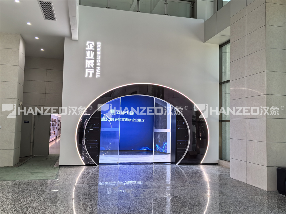 本项目位于双林生物总部,展厅总面积323平方米,定位为集企业形象展示、科技体验、文化传播于一体的科技展厅。汉象展览作为专业的广州展厅设计公司,充分发挥在多媒体展厅设计施工领域的优势,助力双林生物打造现代化、智能化的展示空间。